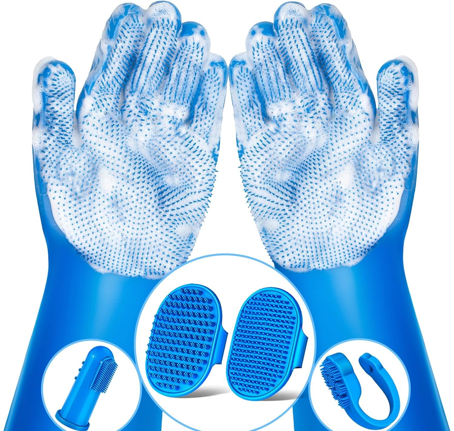– Complete 6-piece pet grooming kit includes grooming gloves, bathing brushes, and finger toothbrushes to support bathing, grooming, hair removal, massage, and basic oral care.