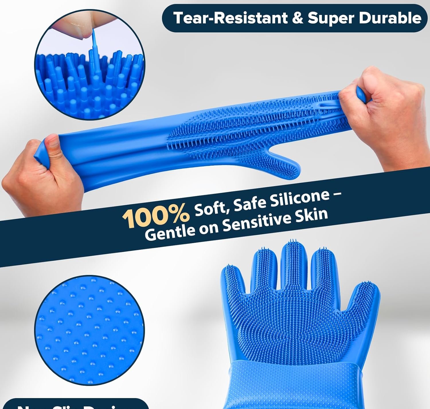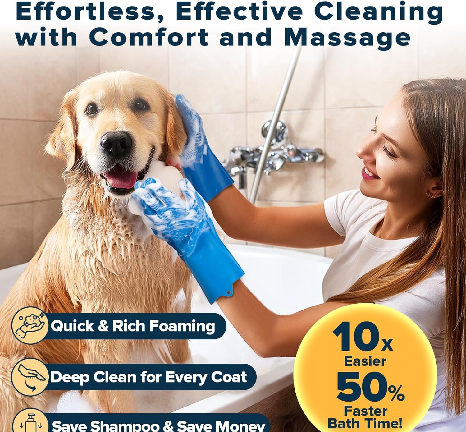 – Grooming gloves feature dense silicone bristles that help lift loose fur, reduce shedding, and create rich lather to improve shampoo efficiency.