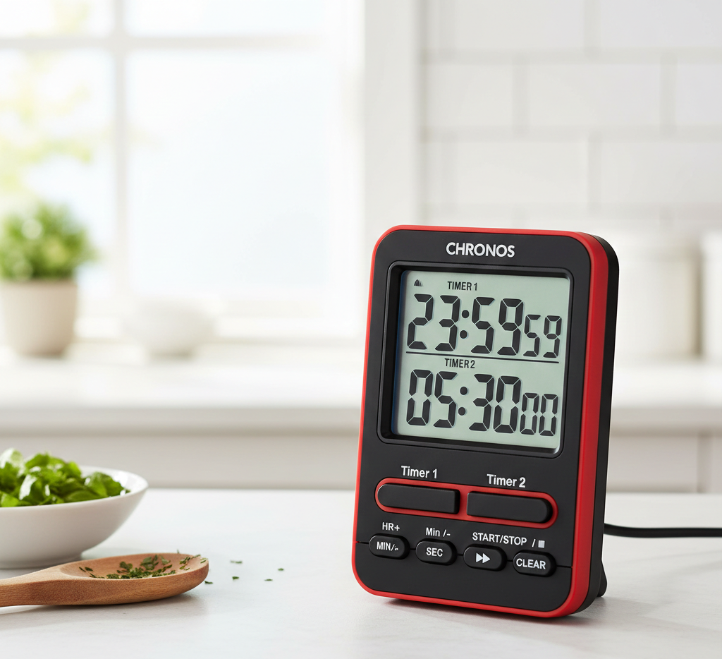 – Dual-event kitchen timer allows two separate countdowns to be set and monitored simultaneously for improved meal planning.