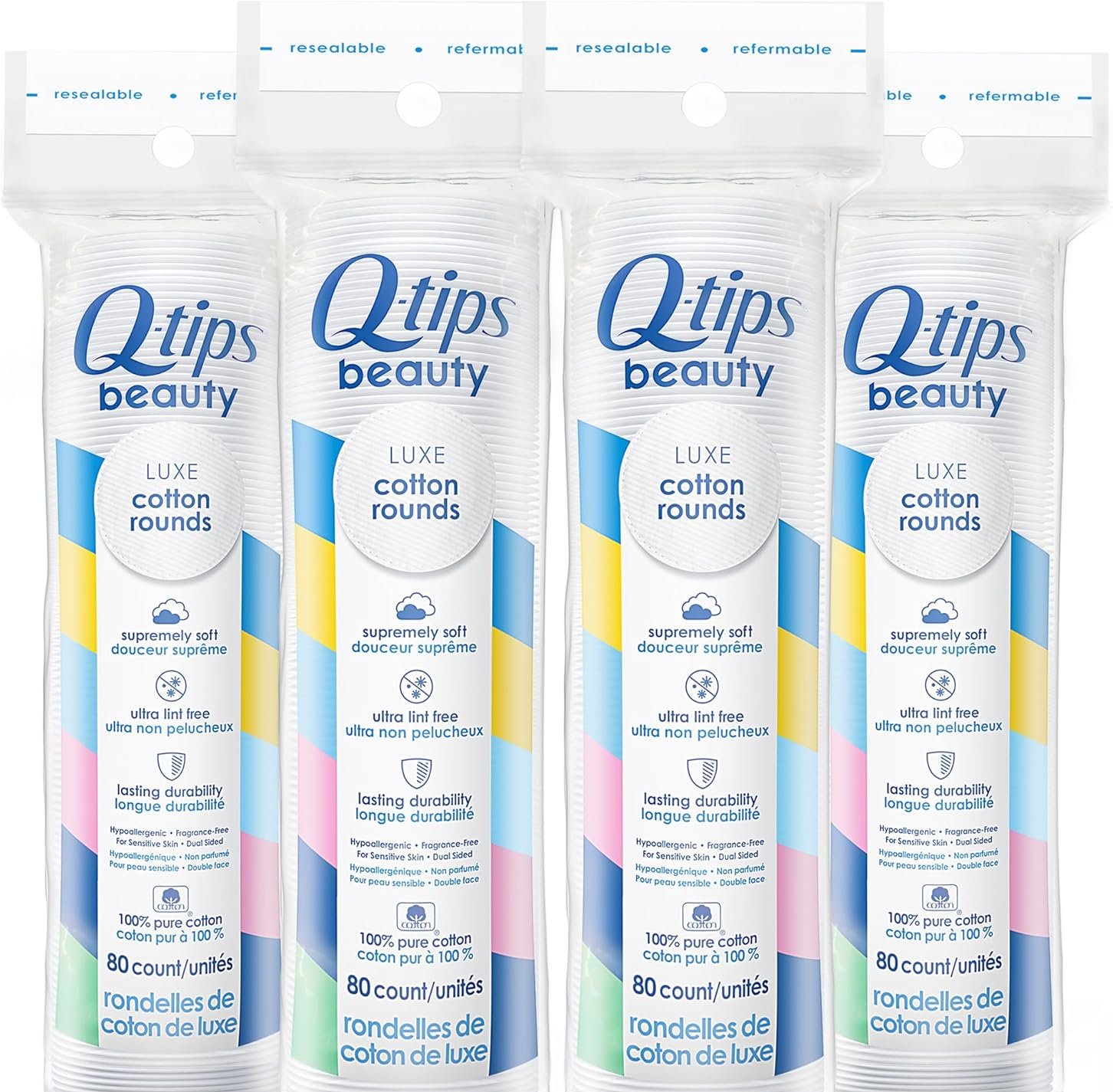 Q-Tips Beauty Luxe Cotton Rounds 80 Count 4-Pack – Hypoallergenic Makeup Remover Pads, Beauty & Personal Care Essentials