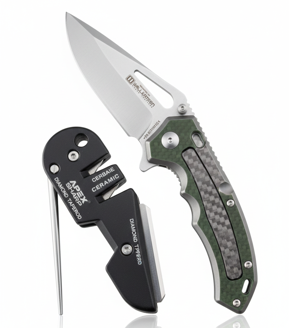 – Pocket-sized knife sharpener designed for on-the-go blade maintenance and field use.