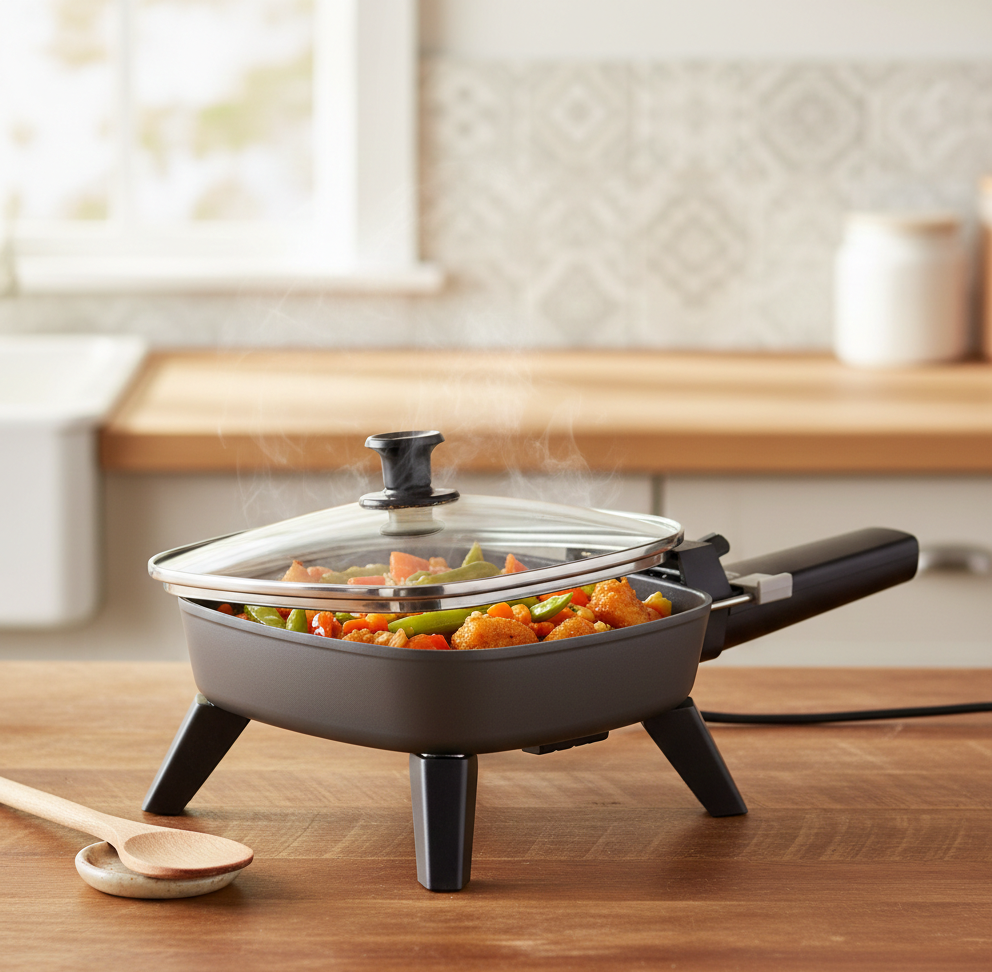 – Supports multiple cooking tasks including browning, sautéing, stir-frying, toasting, and reheating.